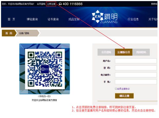 當(dāng)注冊完成之后,需要鉆明公司人員審核過后才可以查看裸鉆信息,如果通過業(yè)務(wù)員聯(lián)系的,請直接聯(lián)系業(yè)務(wù)員,然后提供注冊時填寫的用戶名。 否則就需要聯(lián)系鉆明官網(wǎng)在線客服。